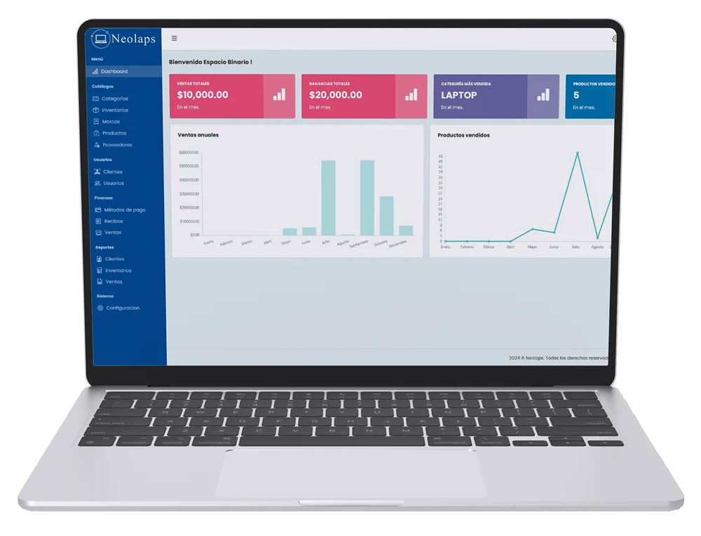 Neolaps es un sistema de software integral diseñado para optimizar la gestión de ventas, productos e inventario en tiempo real, mejorando la operatividad interna y la toma de decisiones.